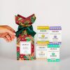 A ilustração da caixa de presente é inspirada nos elementos dos extratos usados nos produtos e nas cores das fragrâncias da linha.