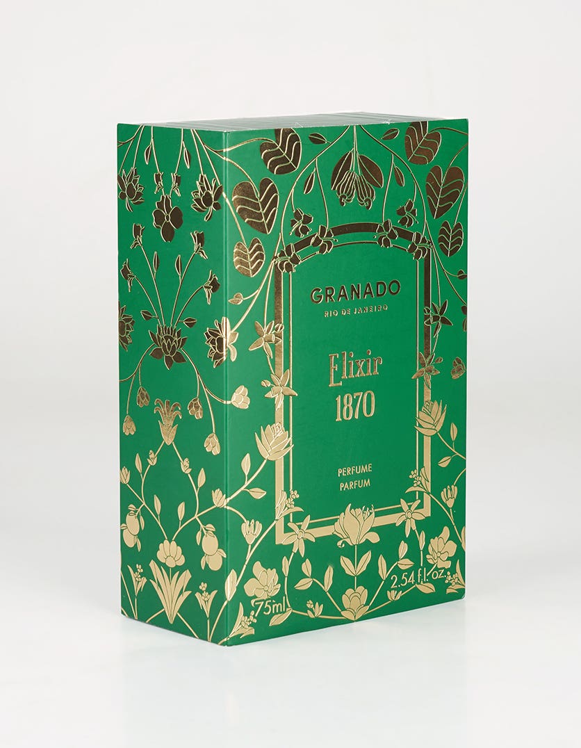 Elixir 1870 é uma criação contemporânea e viva, que evoca uma brasilidade centenária, elegante e o escape à natureza. As notas cítricas, aromáticas e amadeiradas nos transportaram para as montanhas da serra de Teresópolis, no Rio, onde José Antônio Coxito Granado, fundador da marca, cultivava ervas e flores usadas nas fórmulas dos produtos.